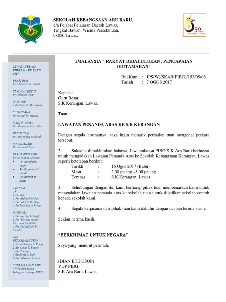 Contoh surat rasmi lawatan penanda aras nice info b.